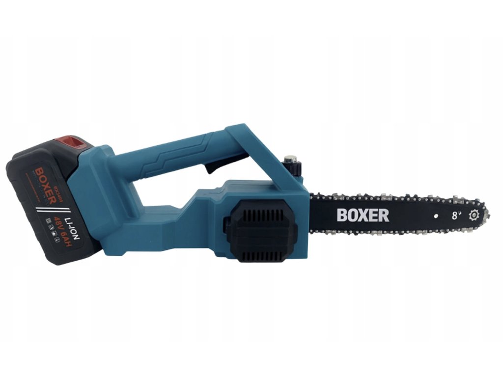 - Řetězová pila: 8″ (≈ 20 cm), řetěz 1,1 mm / 28 článků / 3⁄8″ skok, rychlost 8 m/s