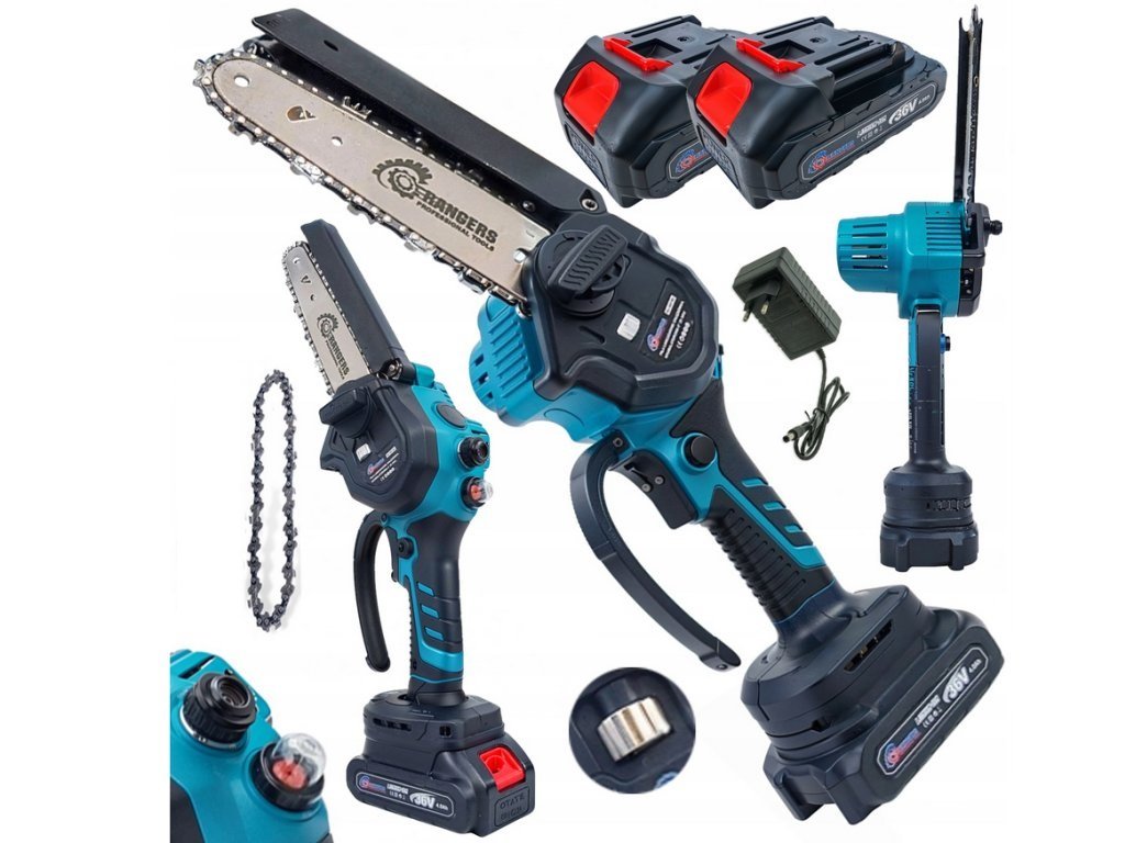Objevte naši mini řetězovou pilu se 2 bateriemi a 1 řetězem v sadě s nabíječkou!