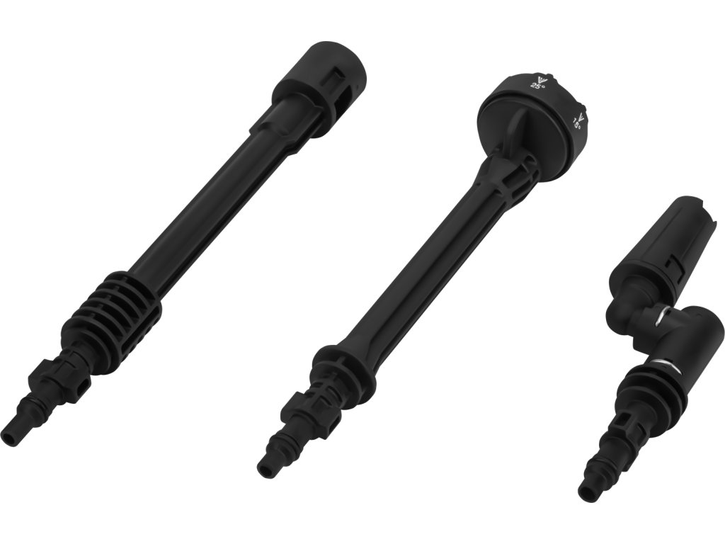- 2× úhlový nástavec (koleno) pro mytí pod úhlem.