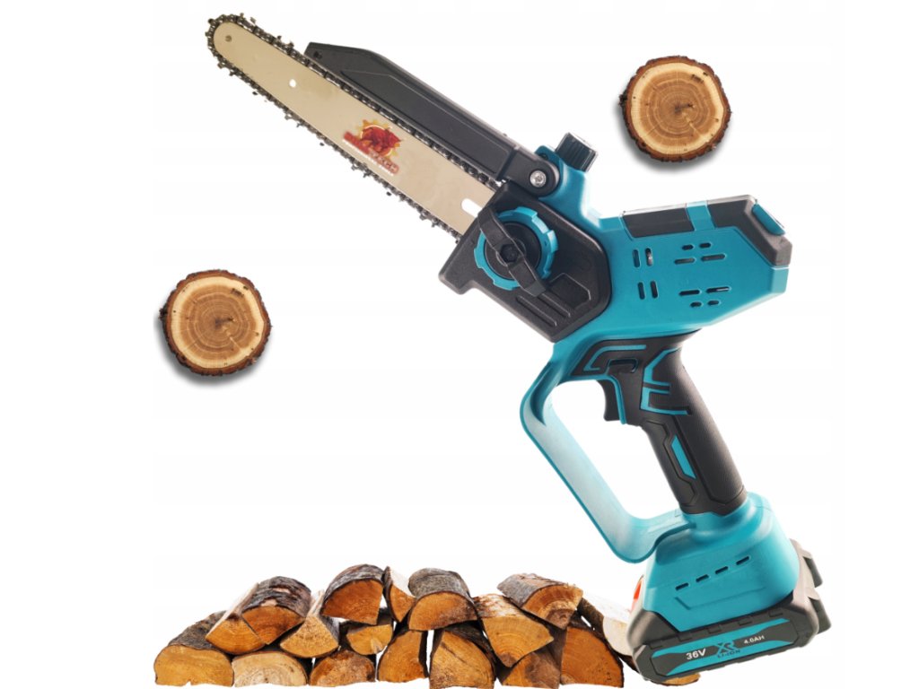🪚 Aku prořezávací řetězová pila 36 V – 10″, bezuhlíkový motor, 2× 4 Ah, LCD displej