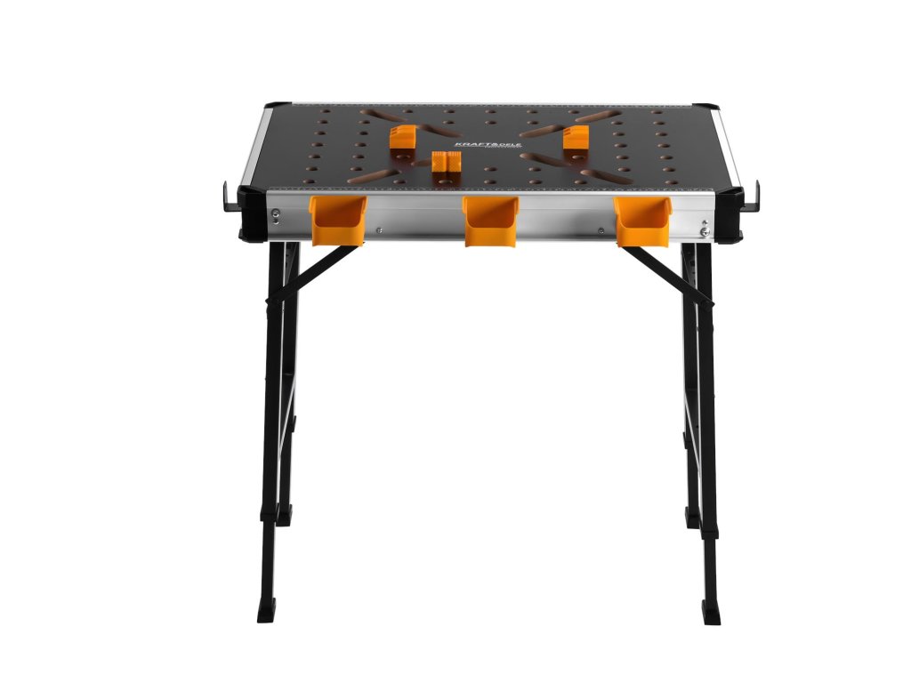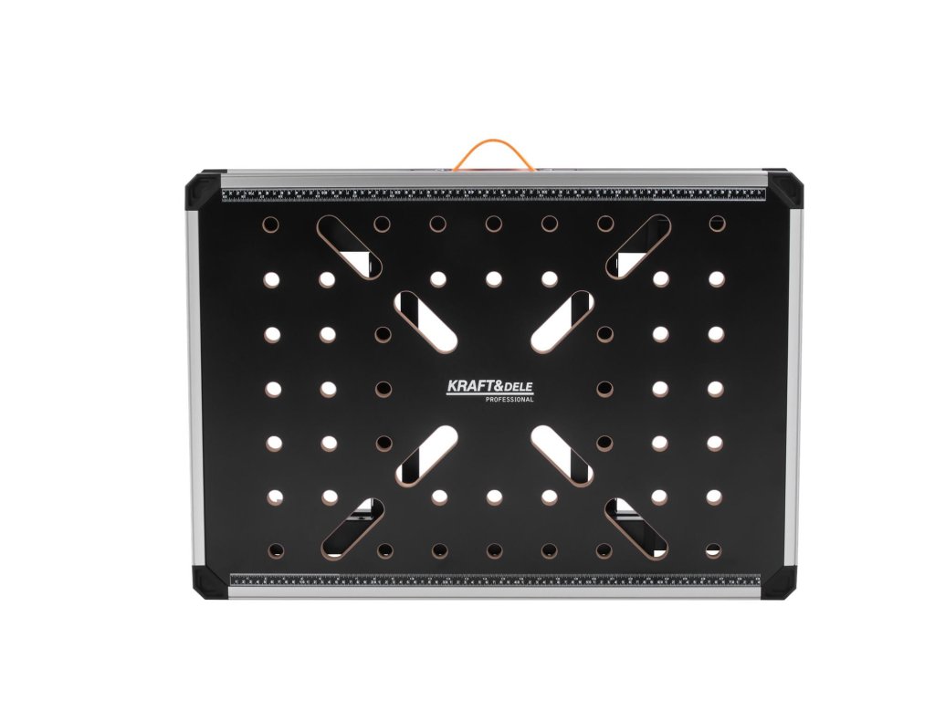 S montážním stolem KD11872 se stanete mistrem jakékoli úlohy. Je skladný, snadno přenosný a zvládne nosnost až 454 kg. Odolná pracovní deska nabízí dostatečný prostor pro vaše projekty, a nastavitelná výška zajistí pohodlí ve stoje i sedě. Navíc, při propojení s druhým stolem, snadno rozšíříte pracovní plochu!