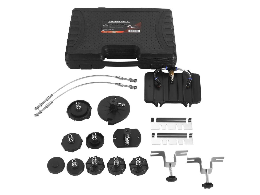Zažijte revoluci v péči o brzdové systémy s naším automatickým nástrojem KD5934. Díky odolné konstrukci z hliníku a plastu zvládnete výměnu a odvzdušnění brzdové kapaliny s lehkostí. Využijte různorodé koncovky a nádrže na kapalinu pro pohodlnou práci. Ideální pro auta, dodávky a motorky.