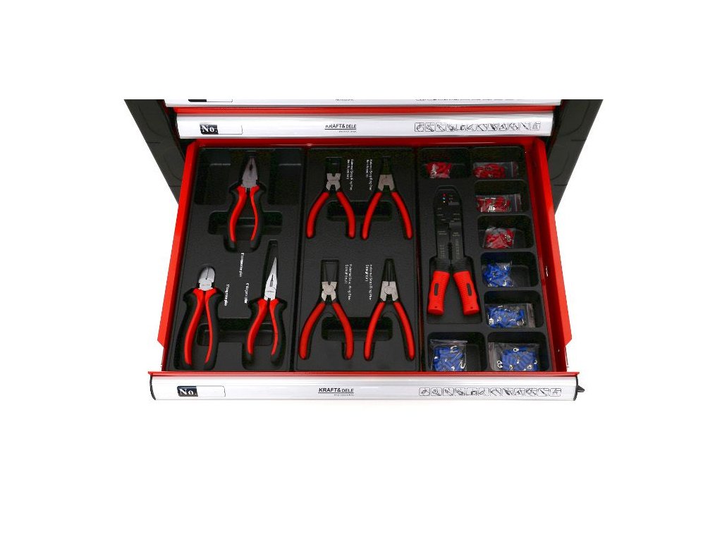 - Čtvrtý šuplík: Uložte si kleště, krimpovací kleště a elektrické konektory přesně tam, kde je budete očekávat.