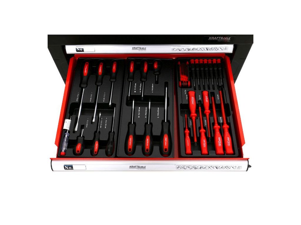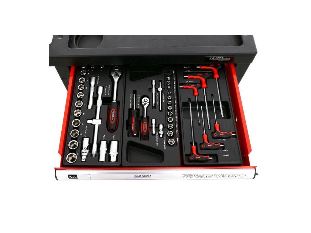 Pokud hledáte ideální doplněk do vaší dílny, pak je Nástrojová skříň 263 ks KD361 právě pro vás! Je vybavena šuplíky plnými nářadí, které usnadní každou vaši opravu. Vychutnejte si: