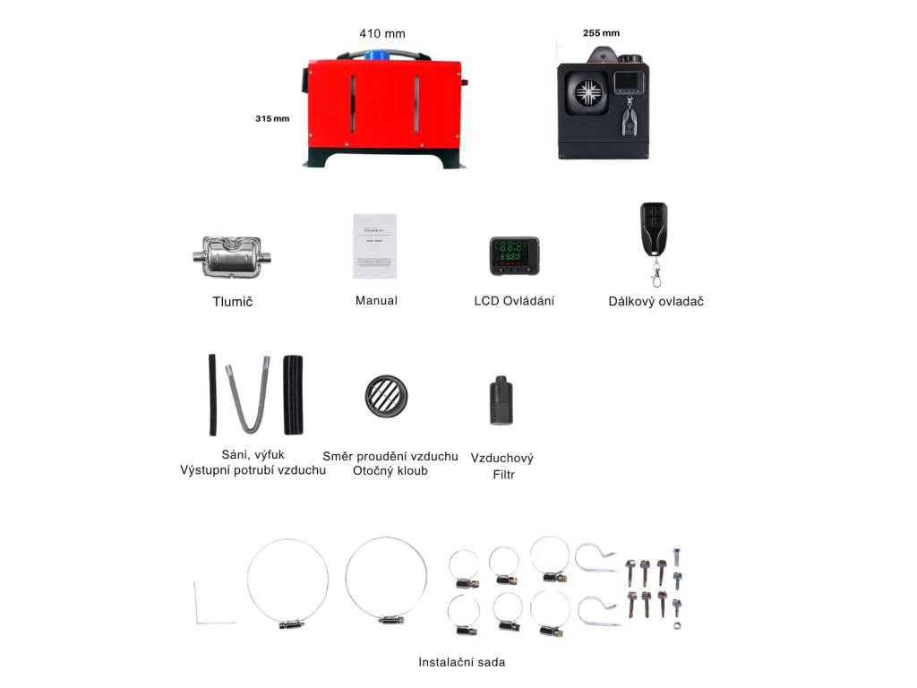 Mobilní naftové nezávislé topení 8 kW, 12 V / 230 V s LCD a dálkovým ovládáním