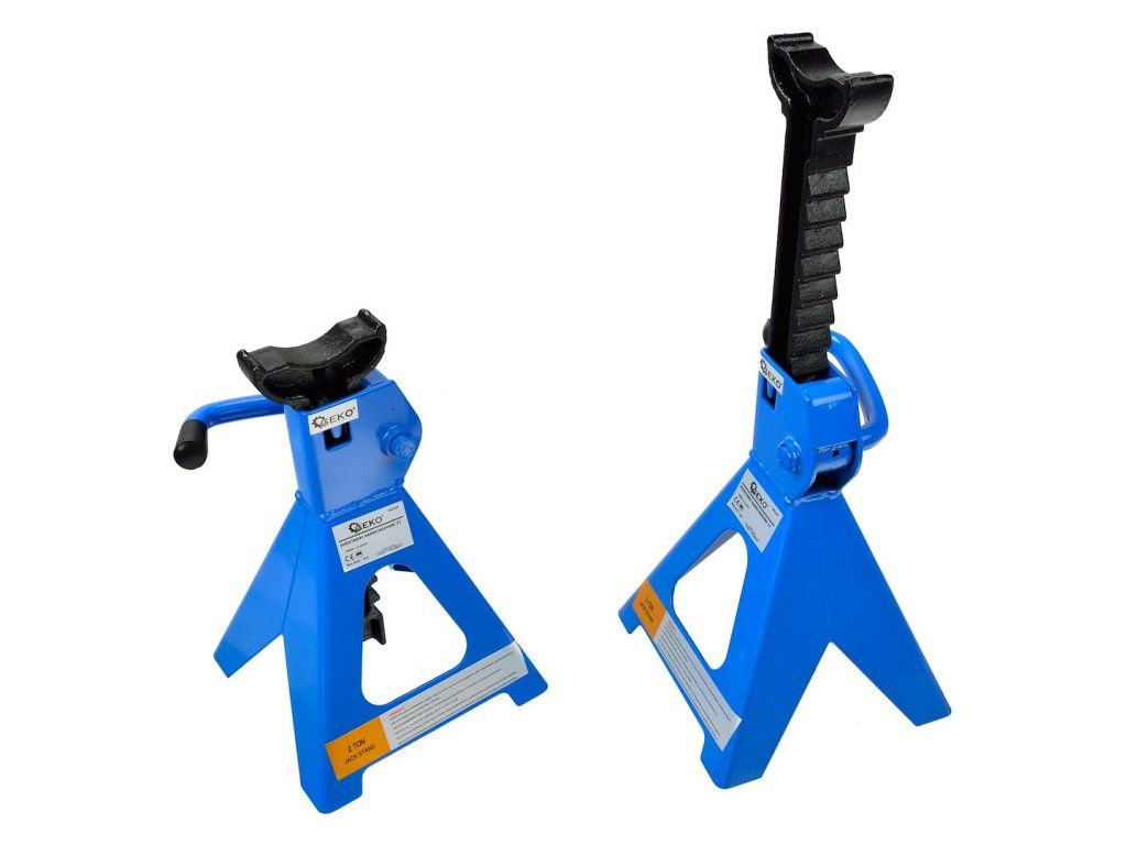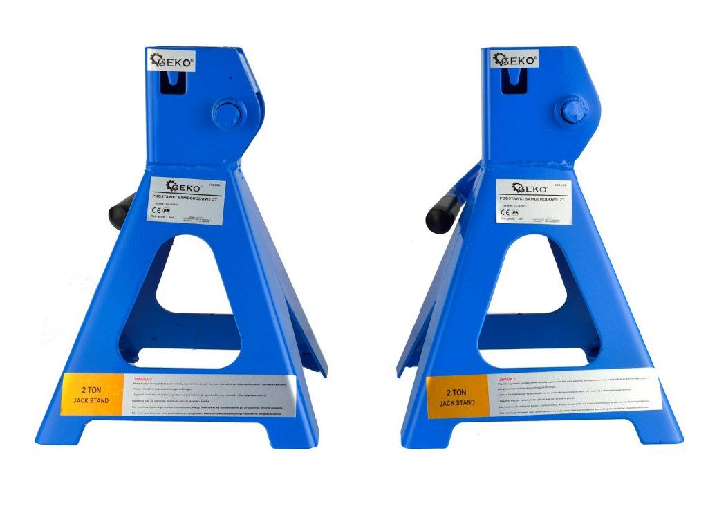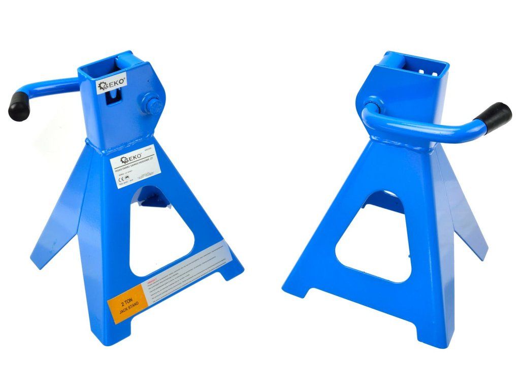 Profesionální automobilové podstavce (kobyličky) s nosností 2T od značky Geko. Tato robustní a bezpečná souprava je nezbytným vybavením pro každou dílnu, garáž či autoservís. Patří mezi nejdůvěryhodnější nářadí pro bezpečné zdvihnutí a držení vozidel během oprav a údržby.