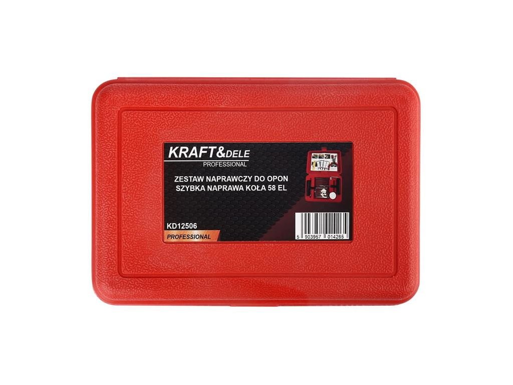 Sada na opravu pneumatik KD12506 je vaší skvělou volbou pro řešení defektů na cestách. S touto 58dílnou sadou snadno opravíte bezdušové pneumatiky na autě, motorce nebo čtyřkolce. Díky odolným materiálům a praktickému kufříku budete mít vše potřebné vždy po ruce. Ušetřete čas, peníze a užijte si jistotu, že defekty už vám náladu nepokazí!