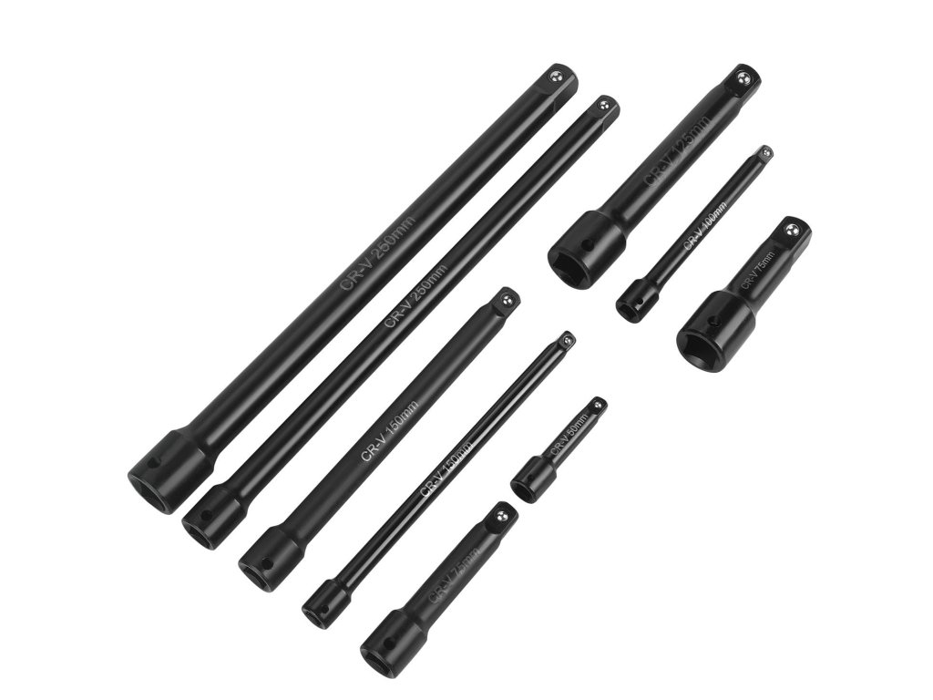 - Specifikace délek pro všechny potřeby: 1/4" (50 mm, 100 mm, 150 mm), 3/8" (75 mm, 150 mm, 250 mm), 1/2" (75 mm, 125 mm, 250 mm)