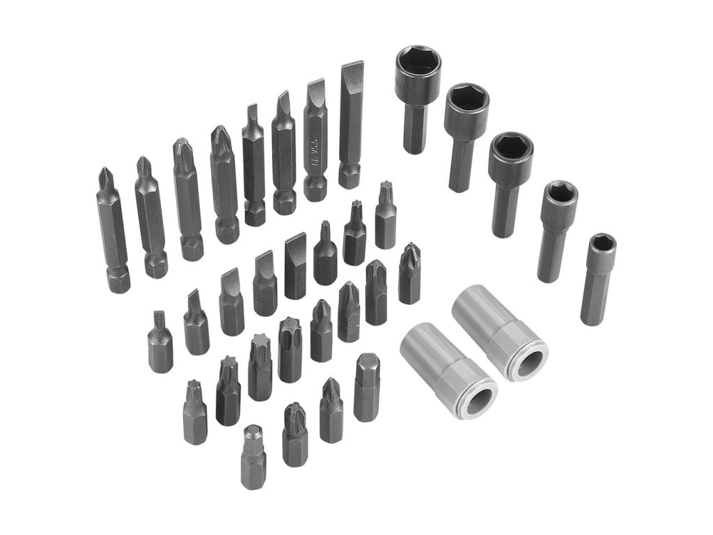 - 20 bitů o délce 25 mm: 5x SL, 3x PH, 3x PZ, 7x TX, 2x H