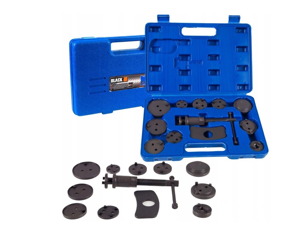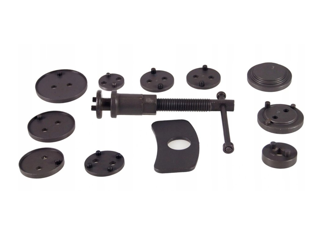 Sada nářadí pro montáž/zpětné vrácení pístů/třmenů kotoučových brzd, levá i pravá strana, 10x adaptér, 1x doraz, 1x tlačný šroub