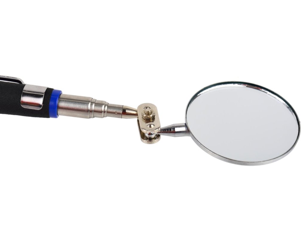 Velmi kvalitní, dobře zpracované kontrolní zrcátko. Konstrukce zrcátka využívá teleskop a praktický a odolný kloub, díky kterému lze zrcátko nastavit do libovolné polohy. Rukojeť zrcátka je potažena plastem, který zajišťuje stabilní uchopení.