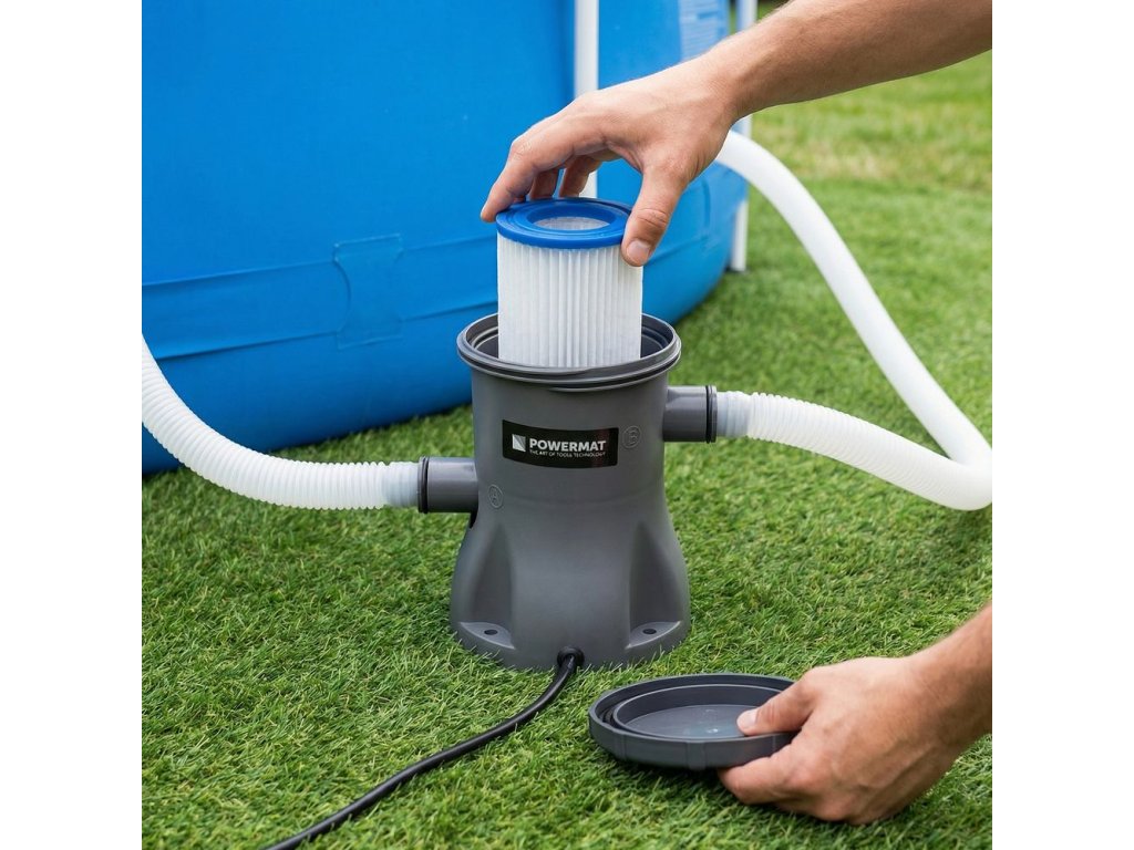 Voda prochází přes filtrační médium, které zachytává nečistoty a brání jejich návratu zpět do bazénu. Pravidelná výměna nebo čištění filtru pomáhá udržet optimální výkon filtrační pumpy a zajišťuje hygienicky čistou vodu.