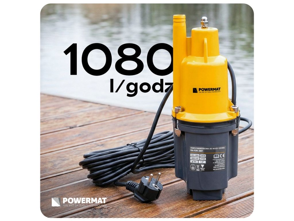 Membránové ponorné čerpadlo na čistou vodu Powermat PM-PDW-280T je ideální do studní, nádrží, sudů i pro odčerpání vody ze zatopených míst. Nabízí výkon 280 W, průtok až 1080 l/h a dokáže vytlačit vodu až do 70 m. Díky krytí IPX8 pracuje bezpečně ve vodě a 10m kabel usnadní manipulaci.