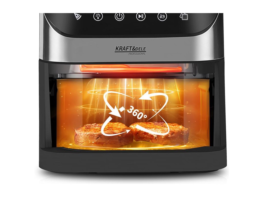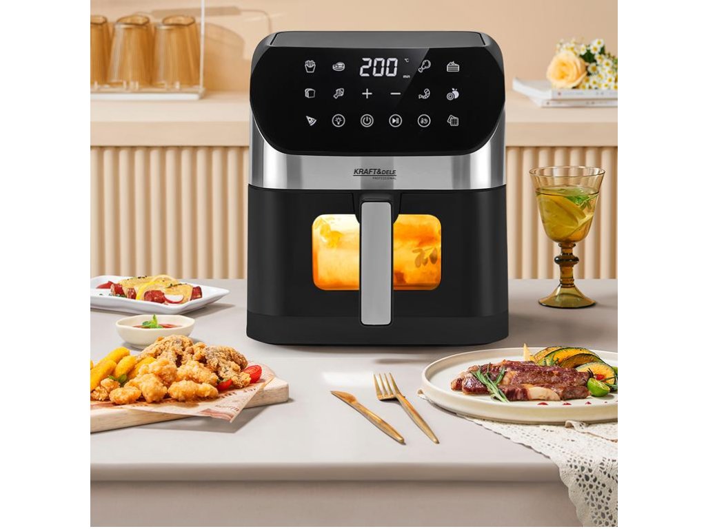 Zdravé vaření pro celou rodinu: výkonná beztuková fritéza s objemem 6 l a příkonem 2000 W cirkuluje horký vzduch pro křupavý povrch a šťavnatý střed. Přehledný LED displej, 10 automatických programů a regulace teploty 80–200 °C zjednoduší přípravu od hranolků přes steaky až po pečivo. Výrobce uvádí i režim sušení ovoce 8 h / 55 °C.