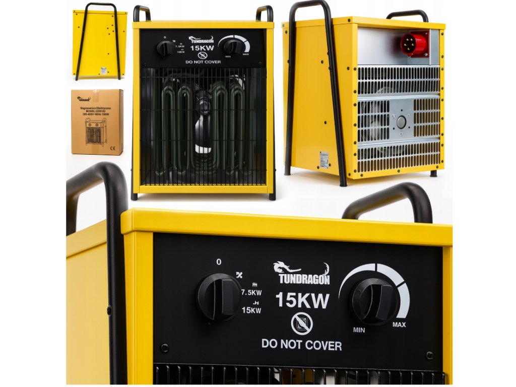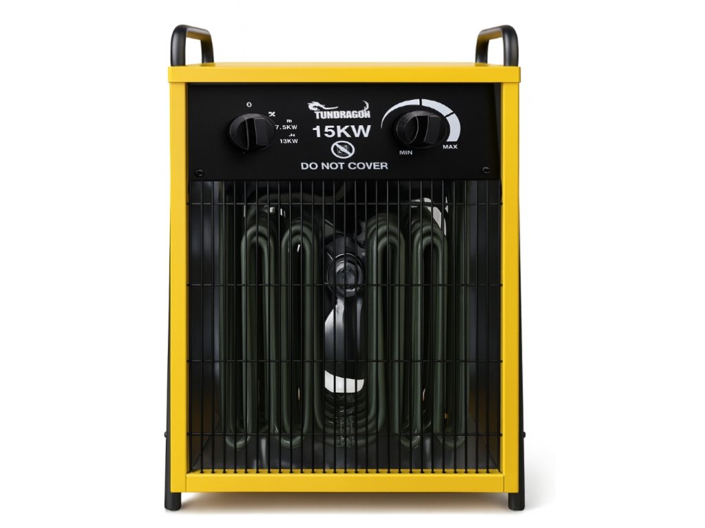 - Topný výkon až **15 000 W** – ideální pro velké místnosti, dílny a sklady.