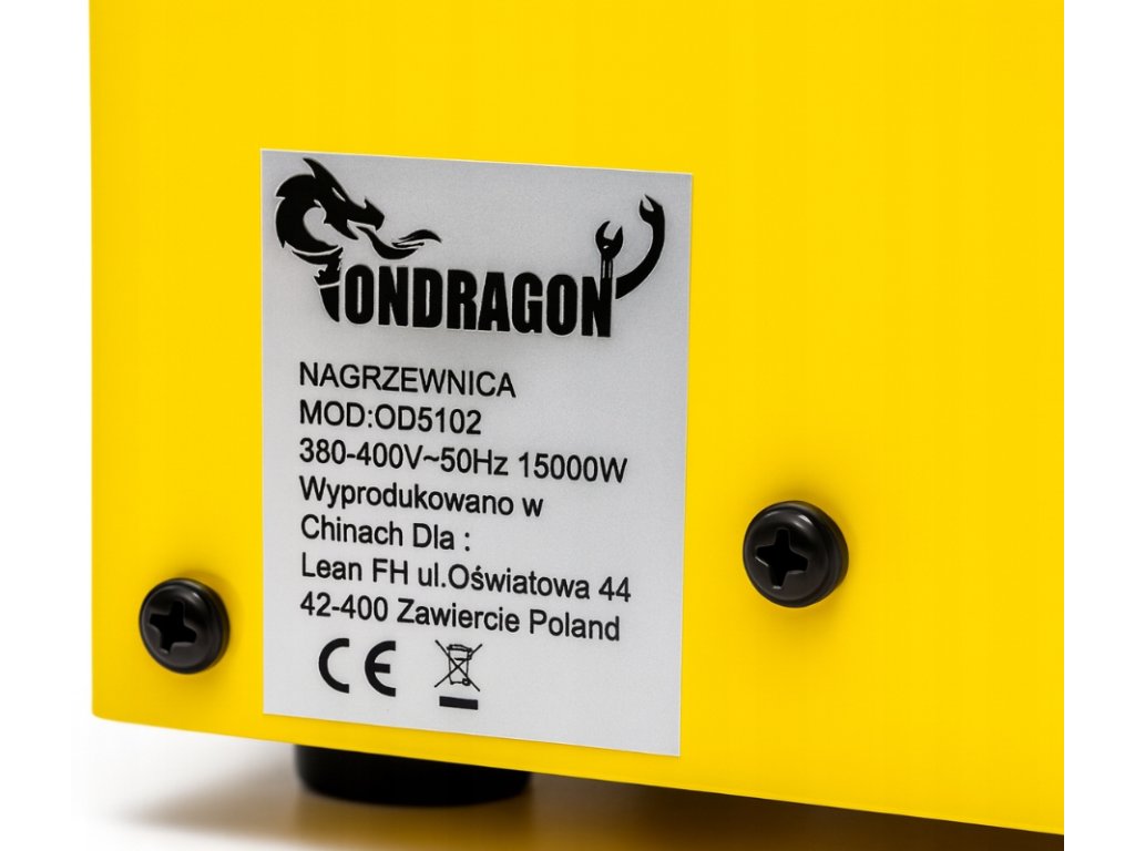 Model Ondragon OD5102 je průmyslové elektrické topidlo určené pro rychlé a efektivní vytápění velkých místností. Díky vysokému výkonu 15 kW a napájení 400 V poskytuje stabilní teplo bez emisí, což jej činí ideálním pro dílny, sklady, garáže, haly, stavební objekty i komerční provozy.
