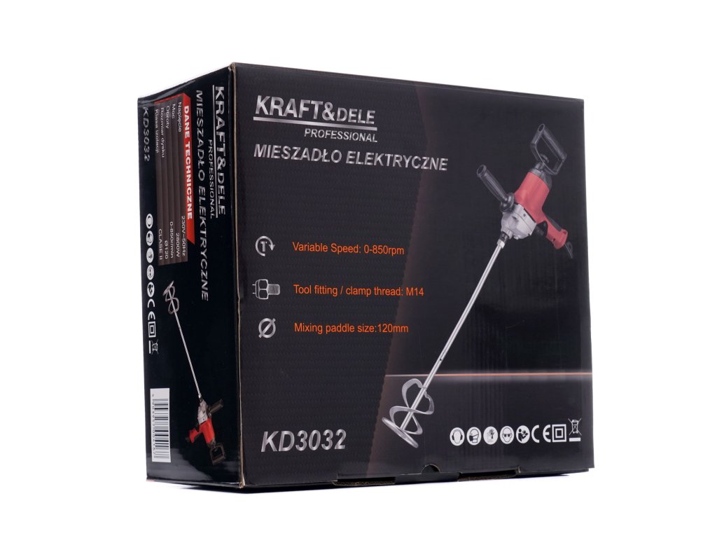 - Obsah balení zahrnuje vše, co potřebujete: míchadlo KD3032, míchadlo s upevněním M14, nástroj pro údržbu a uživatelskou příručku