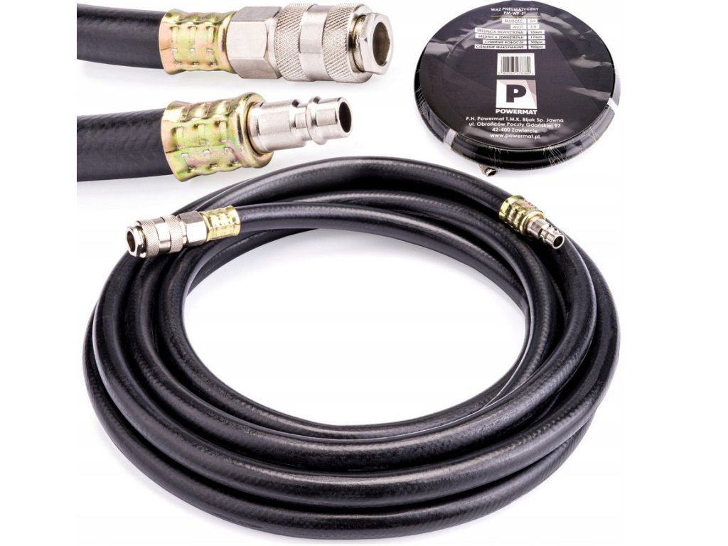 Pneumatická hadice slouží k pohonu veškerého pneumatického nářadí včetně brusek, stříkacích pistolí, pneumatických kladiv, vrtaček atd. Vzhledem k tomu, že není spirálová, lze ji navinout na buben. Největší výhodou je, že je vyroben z pryže, která je odolná proti oleji, je pružná a odolná proti tlaku.
