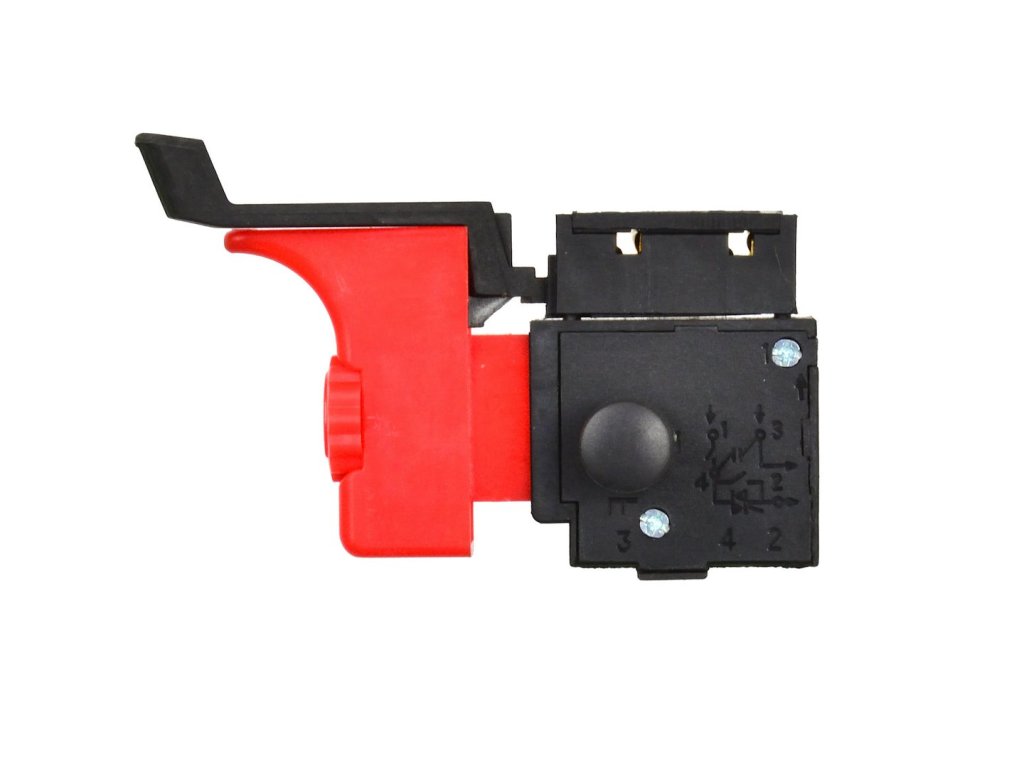 Tlačítkový spínač s regulací otáček, změnou směru otáčení vpravo/vlevo a aretací spínače v trvale zapnuté poloze.