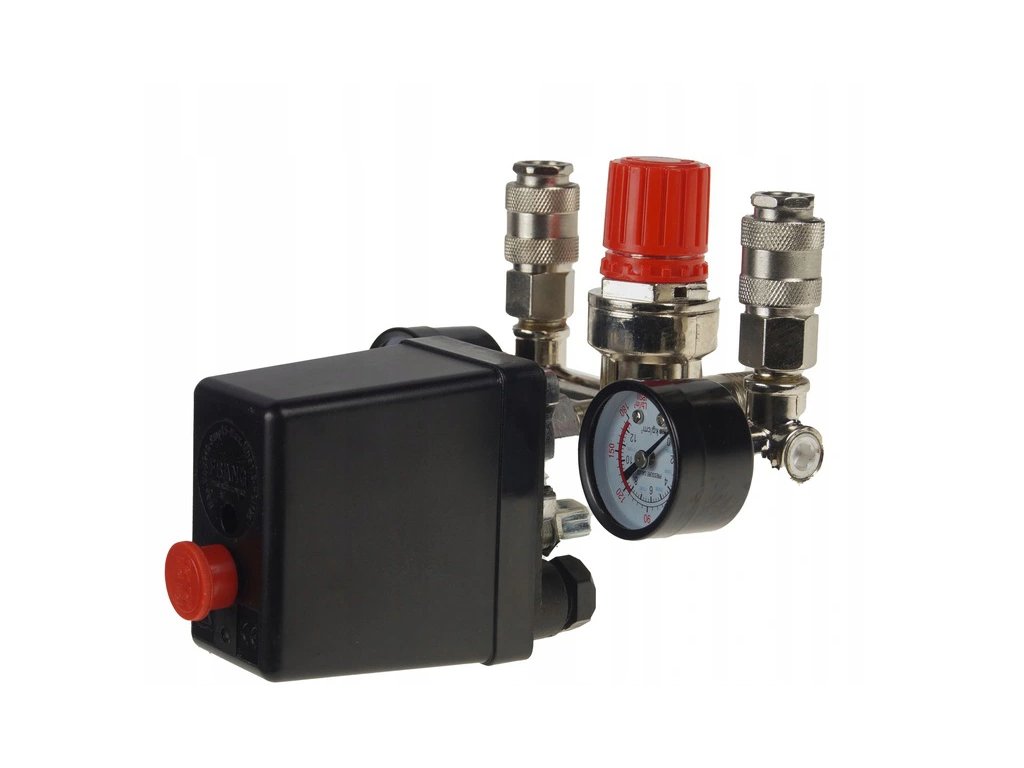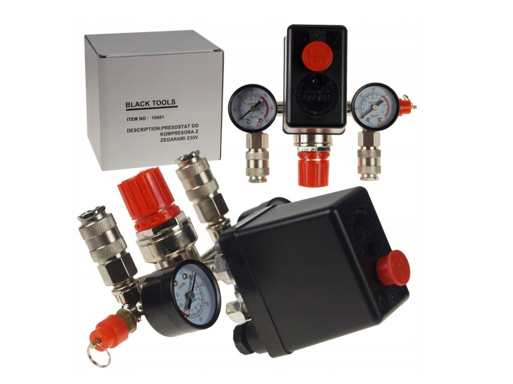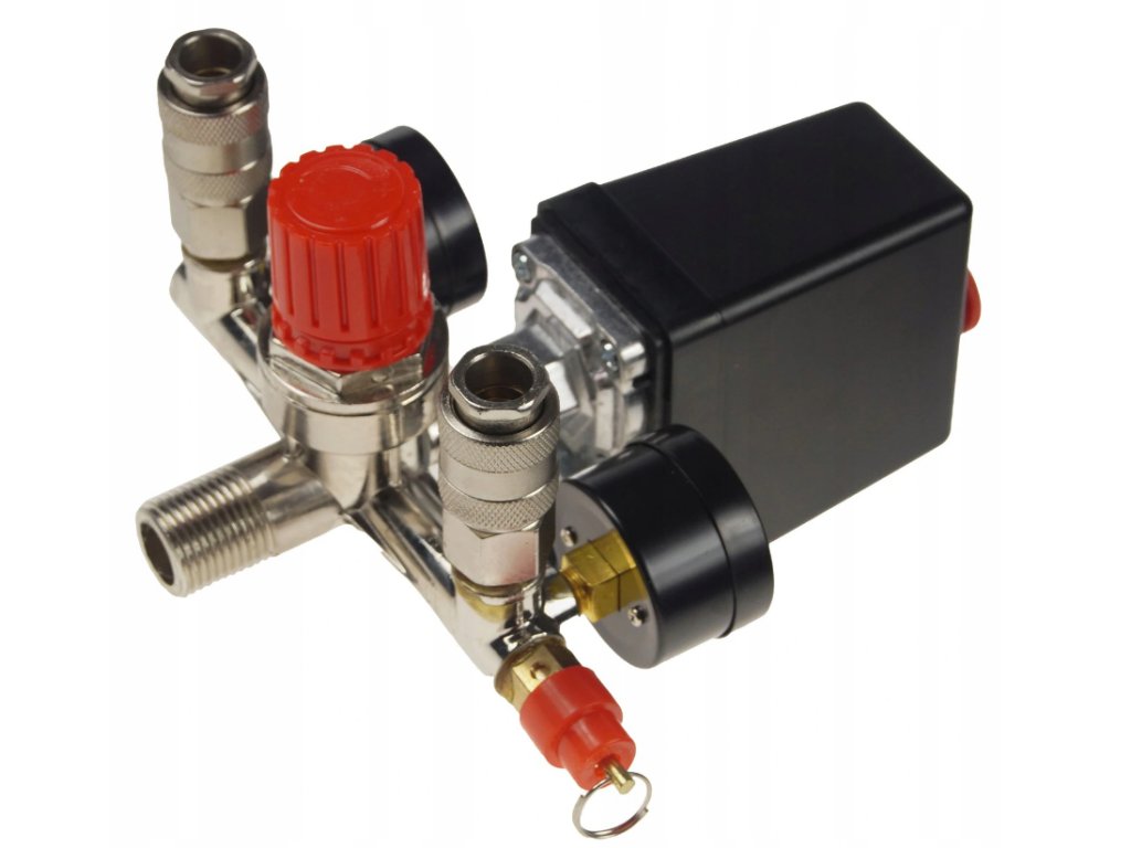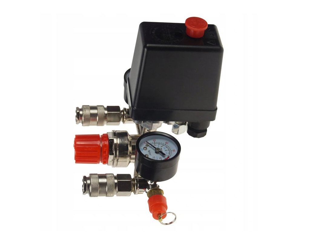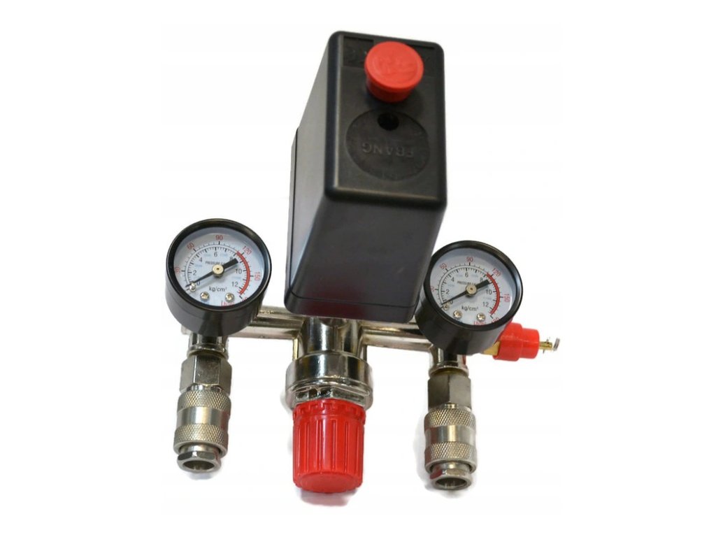 - Tlakový spínací ventil + ukazatele tlaku pro vzduchový kompresorNevíte si rady