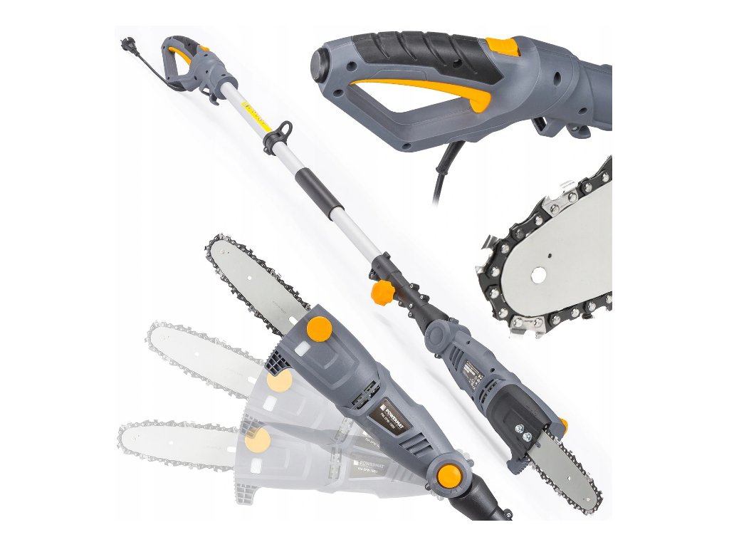 Délka vodicí lišty je 25 cm a pracovní délka je 18 cm. Pila je vyrobena z vysoce kvalitních materiálů, které zajišťují dobrou stabilitu a následně menší únavu při práci. Pila má systém automatického mazání řetězu. Hladinu oleje lze snadno zkontrolovat pomocí průhledného měrky. Velkou výhodou pily je její hmotnost pouze 3,8 kg. Rychlost řetězu 10 m / s. Elektrická pila na větve Powermat PM-EPW-1000 Výkon 1-2 HP