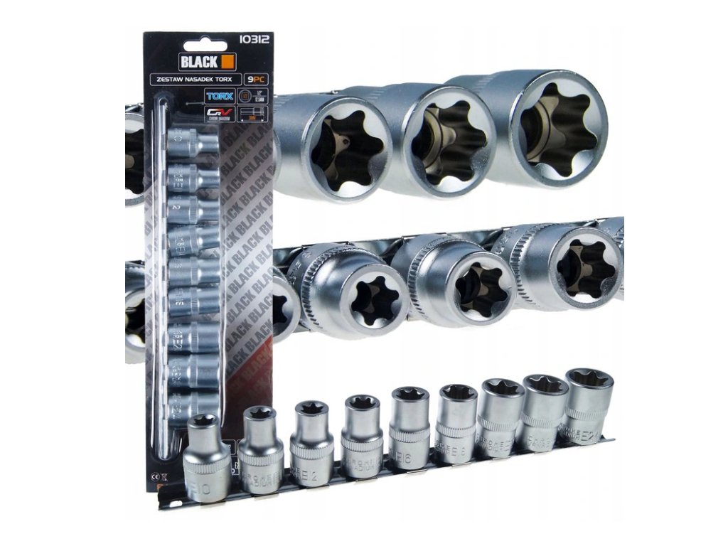 - Sada specializovaných hlavic TORX 9KS na kolejnici, které se používají v mechanice, automobilovém průmyslu a elektronice