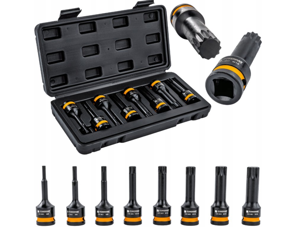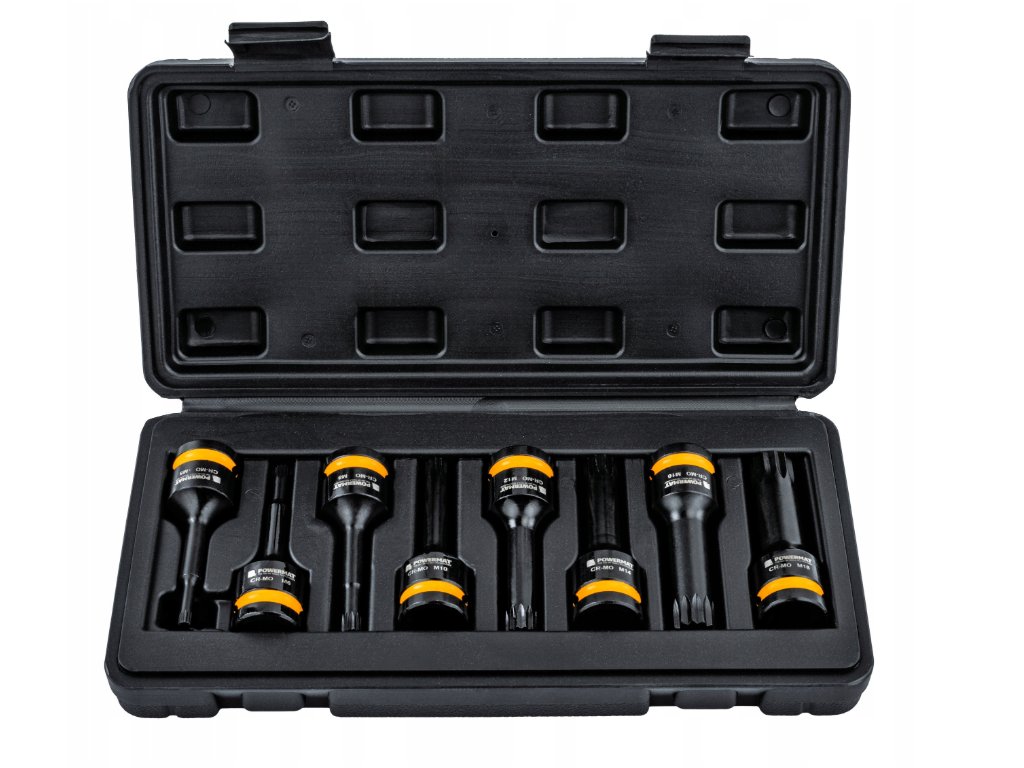 Sada rázových nástrčných hlavic SPLINE 1/2" – 8 ks (M5–M18) v kufříku