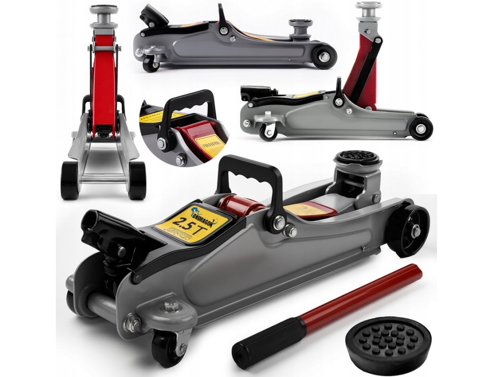 Robustní nízko profilový hydraulický zvedák s nosností 2,5 t je ideální pomocník pro pneuservisy, autodílny i domácí použití. Díky své nízké konstrukci se vejde i pod sportovní a snížené vozy, zatímco gumová podložka chrání karoserii a prahy automobilu před poškozením.