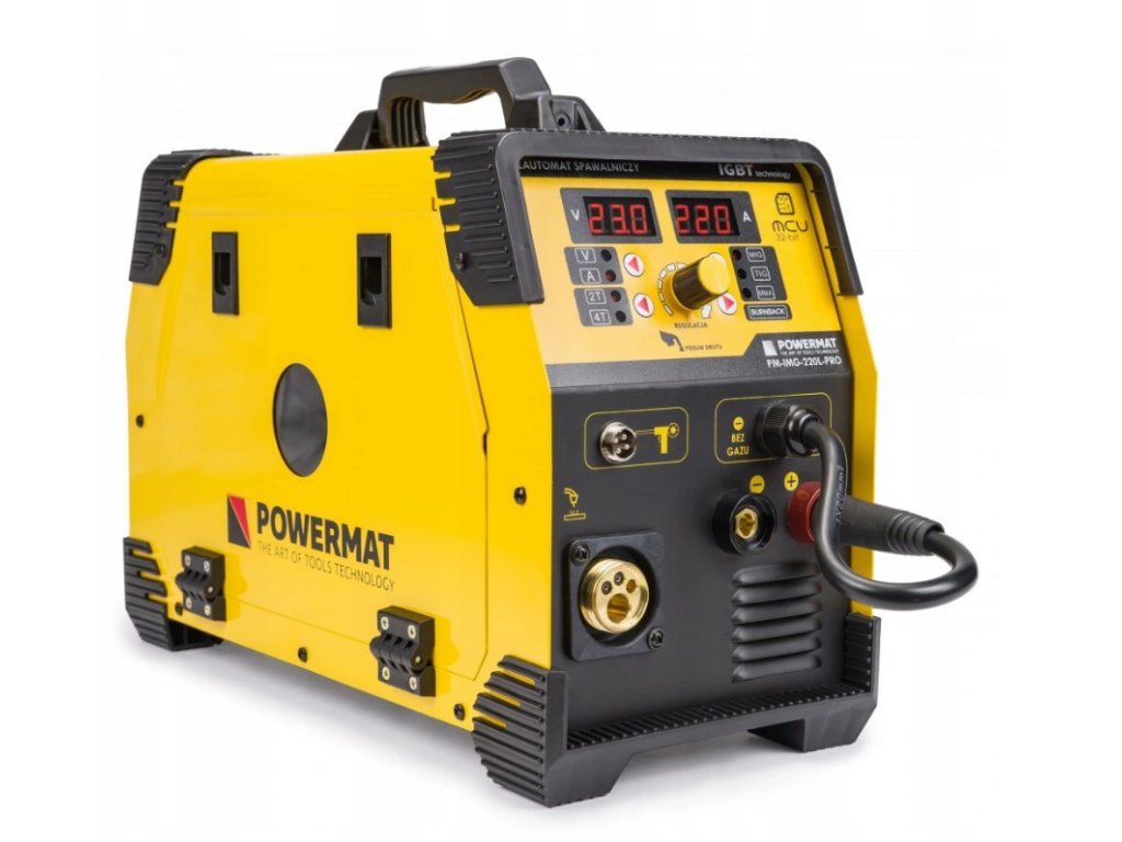 Poloautomatický svařovací stroj Powermat PM-IMG-220L-PRO má velmi široké použití. Umožňuje efektivní svařování různých typů skupin materiálů v širokém rozsahu tlouštěk materiálů. Aplikované IGBT mají příznivý účinek na nižší spotřebu elektřiny, větší odolnost proti poruchám a poklesům napětí a dobré charakteristiky oblouku. Ovládací panel s popisem funkcí v polštině se snadno používá a obsluha má rychlý přístup ke všem funkcím. To má pozitivní vliv na ergonomii a efektivitu práce v závodě.