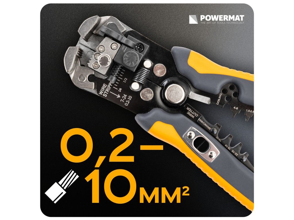 Odizolovací kleště POWERMAT PM-SI-2T jsou navrženy pro spolehlivé a precizní odstranění izolace z elektrických vodičů bez rizika poškození měděného či hliníkového jádra. Ideální pro elektrikáře, techniky i kutily, kteří chtějí dosáhnout čistého a přesného výsledku při přípravě vodičů pro další montáž, pájení nebo spojování.