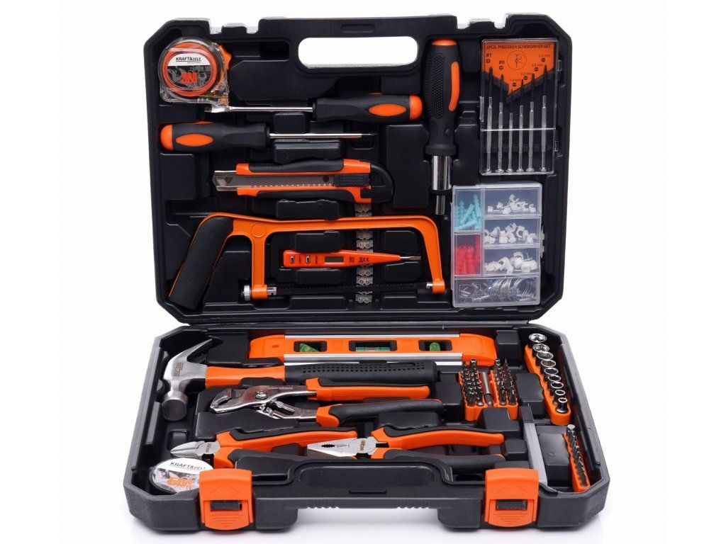 Sada obsahuje všechno, co potřebujete pro běžné domácí opravy a údržbu.