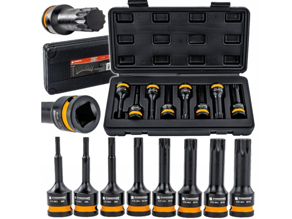 - 🔧 Sada 8 ks udarových nástrčných klíčů Spline 1/2″
