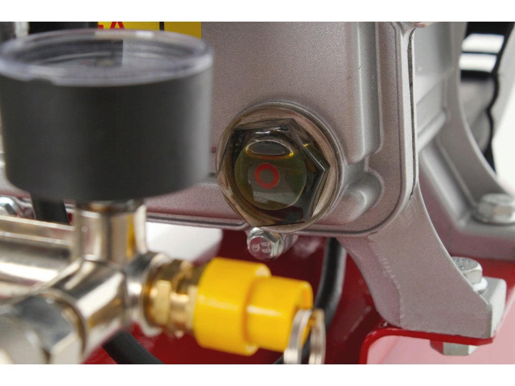 - 230 V Spolehlivý olejový kompresor 24 l s motorem 2,8 kW (3,8 HP), sacím výkonem 205 l/min a maximálním tlakem 8 bar