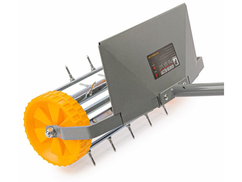 Ruční aerátor / vertikutátor POWERMAT PM-AR-34T je praktický zahradní nástroj pro provzdušňování a údržbu trávníku. Díky kolečkům a ostrým kolíkům efektivně propichuje půdu, zlepšuje výměnu vzduchu a podporuje regeneraci trávníku.