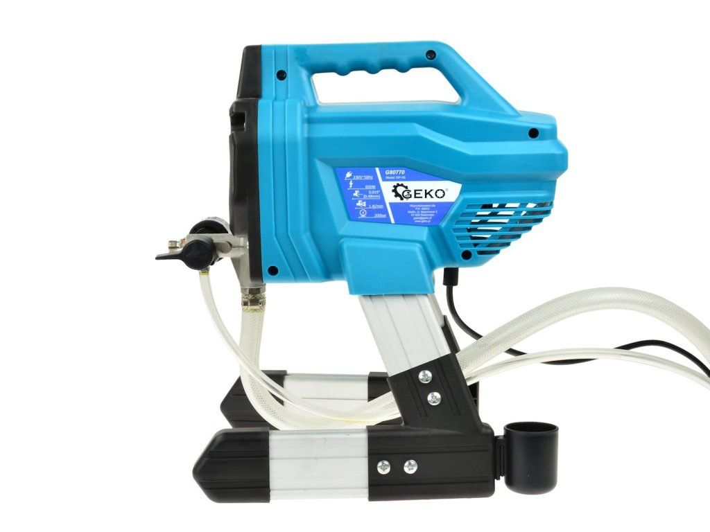 Hydrodynamický malířský agregát GEKO DP-X6. Mobilní agregát je ideální volbou pro kutily, majitele domů a osoby používající barvy s nízkou až střední viskozitou. Bez problémů zvládne natírání interiérů, plotů, teras atd. Pro použití s nátěrovými hmotami typu: barvy na vodní bázi, barvy na olejové bázi, latexové barvy, akrylové barvy, emalie, laky.