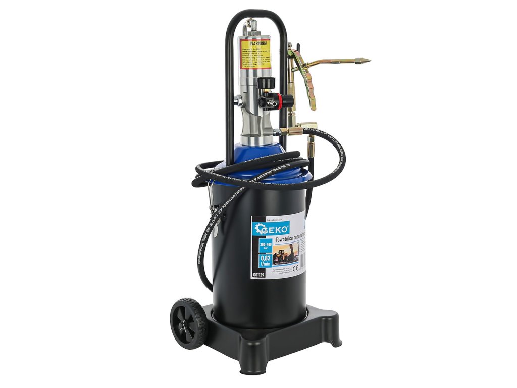 Pneumatická maznice určená k čerpání maziv pod vysokým tlakem. Součástí sady je mazací čerpadlo, mazací hadice 3 m a otočná mazací pistole 360°.