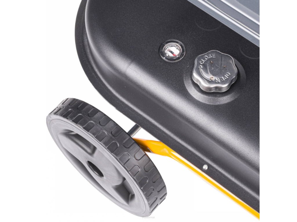 Vestavěné průhledítko informuje o stavu paliva. Velká silniční kola zajišťují bezpečnější a snadnější přepravu zařízení.