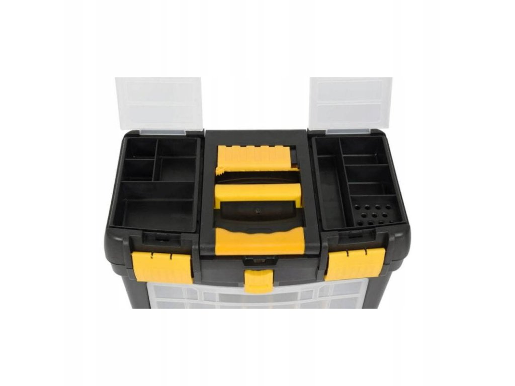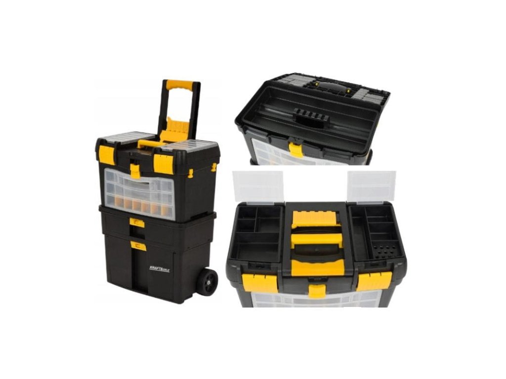 - TECHNICZNA: Wymiary: 460x220x620/840 mm Materiał: PP Uchwyt: tak Rękojeść: tak Kółka: tak Liczba kółek: 2 Liczba segmentów: 1 Wymiary zewnętrzne: 335x190x200, 335x215x75, 335x190x200 mm Wymiary organizera: 360x170x40 mm SKŁAD: Wózek warsztatowy KD1075 Oryginalne opakowanie Paragon / Faktura Záruka