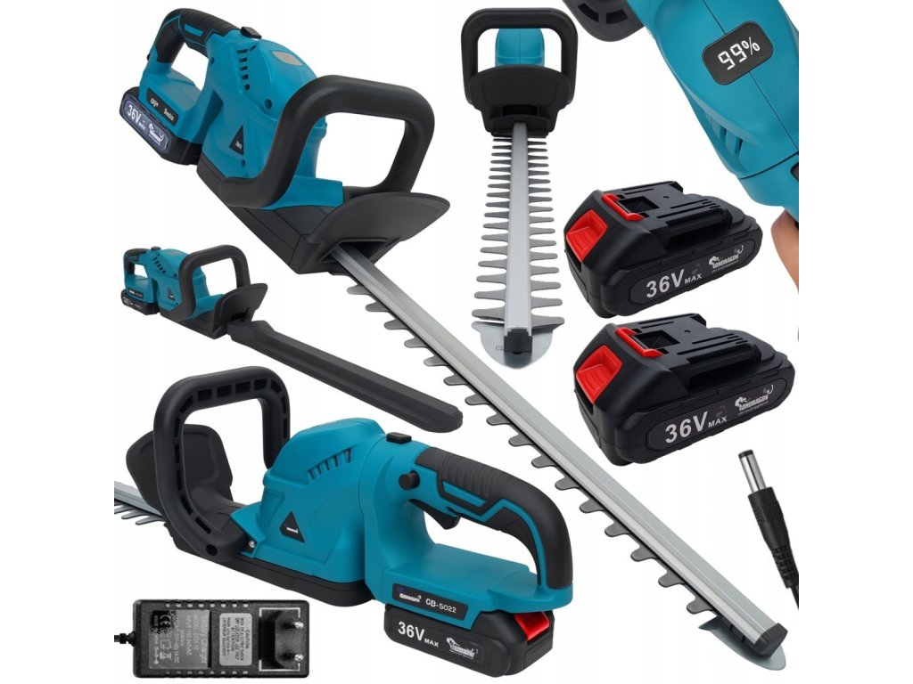 Aku nůžky na živý plot 36 V | 2× baterie 2 Ah | lišta 51 cm | LCD ukazatel