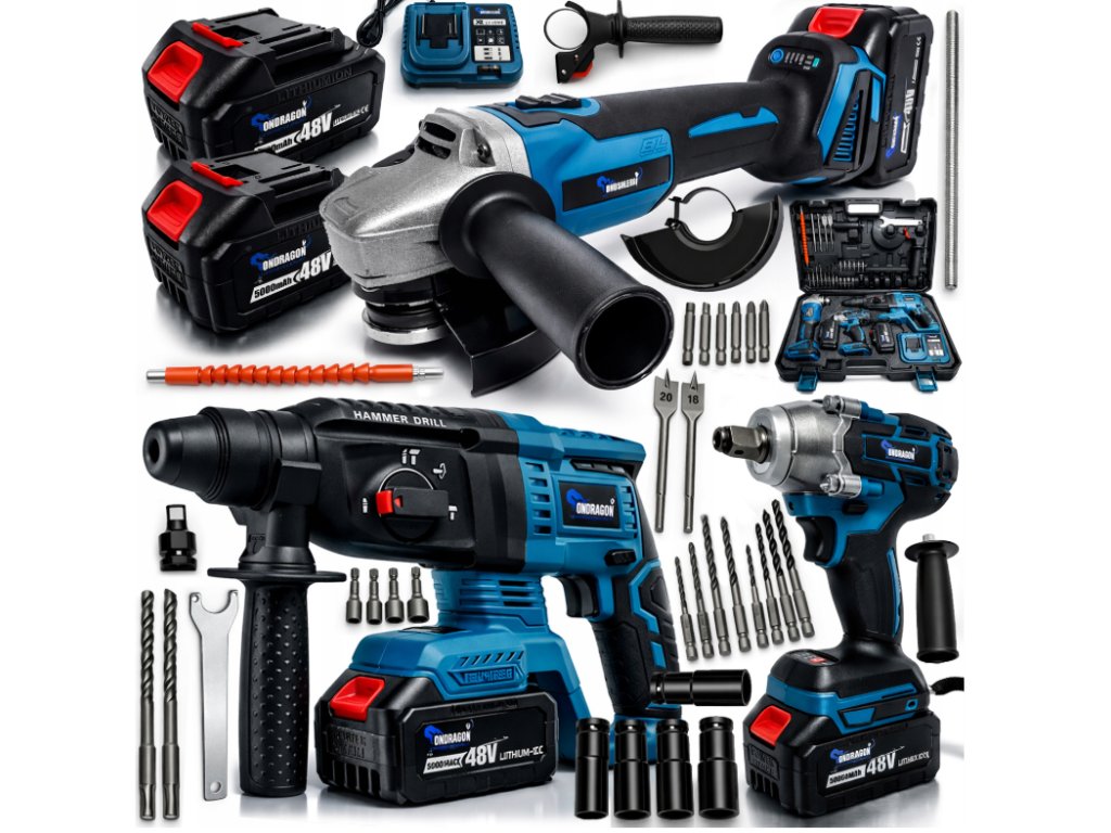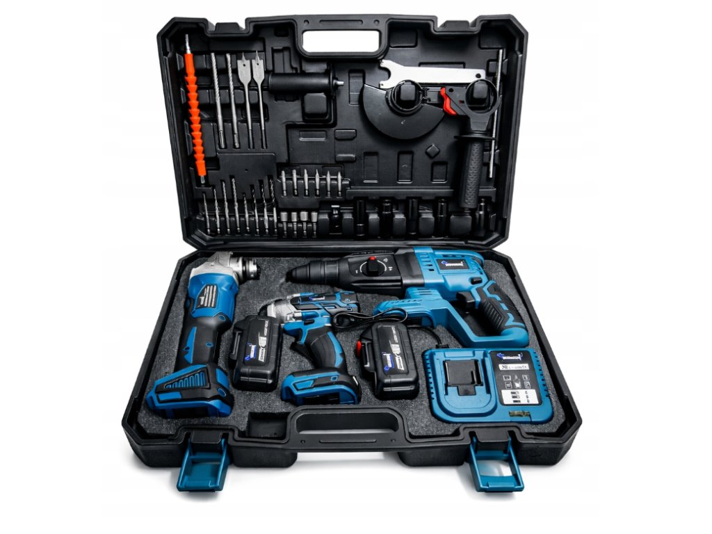 Pokud hledáte aku sadu 3 v 1, akumulátorové nářadí 36 V nebo aku vrtačku, brusku a utahovák bez kabelu, tento set nabízí univerzální využití a dobrý poměr ceny a výbavy.
