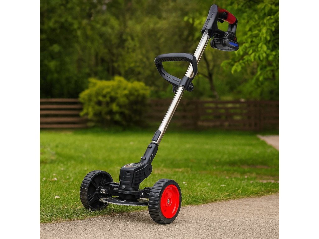 🌿 Aku sekačka 36 V s kolečky a 2× baterií – pohodlí bez kabelu