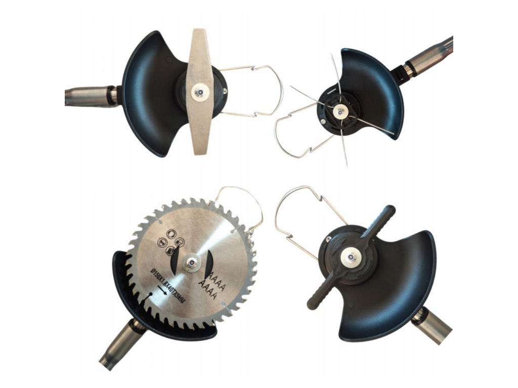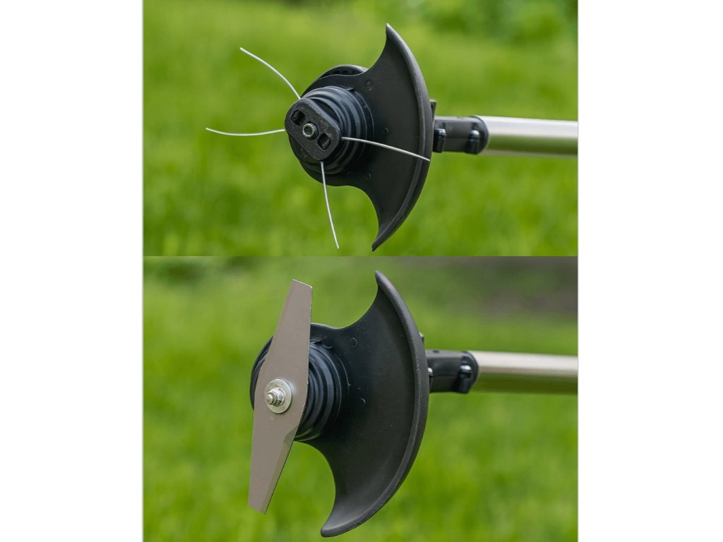 Snadno vyměnitelná hlava umožňuje použití strunové hlavy pro běžné sekání a kovového kotouče na houževnatý porost. Univerzální pomocník pro vaši zahradu.