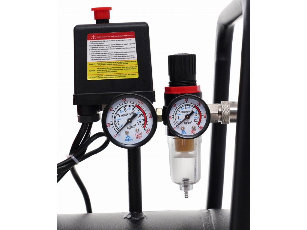 - Pomocí standardního napájení 230V je tento kompresor snadno použitelný doma i v profesionálním prostředí