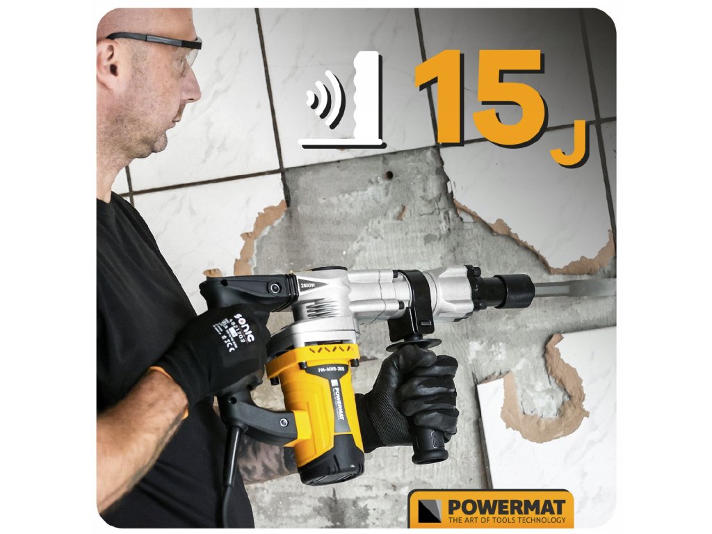 Vysoká úderová energie 18 joulů umožňuje rozbíjet i pevné materiály jako beton, cihly a kámen.