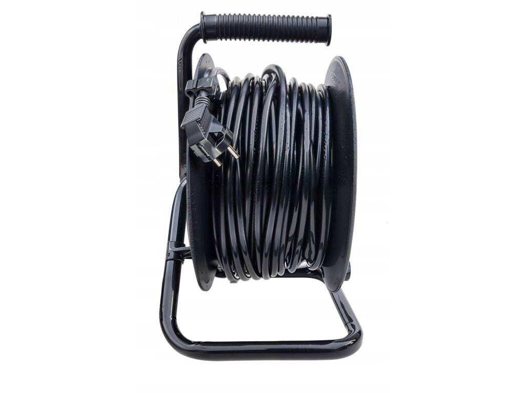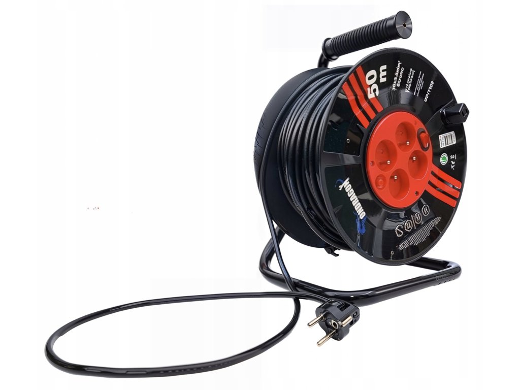 Robustní bubnový prodlužovací kabel se silným měděným vodičem, kovovou konstrukcí, ochranou IP44 a praktickou blokací proti samovolnému odvíjení. Skvělý pomocník pro každou stavbu, zahradu nebo dílnu!