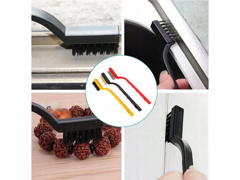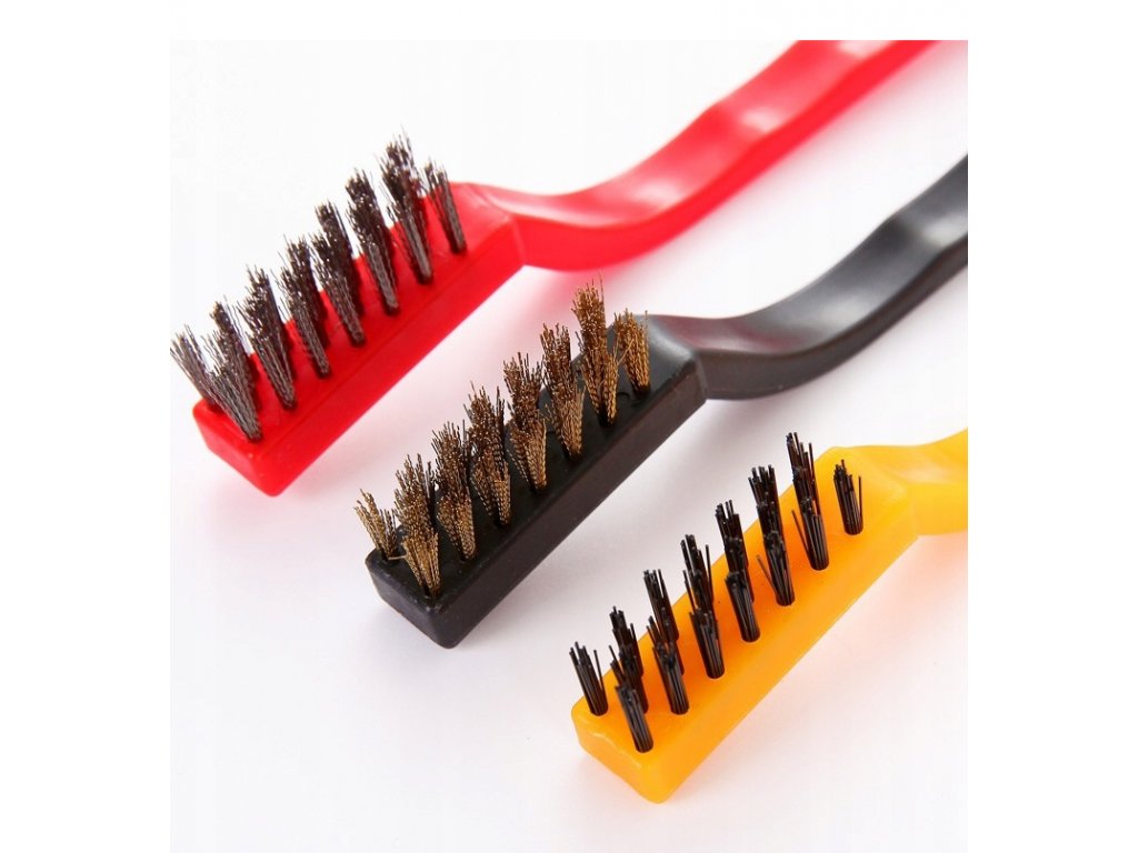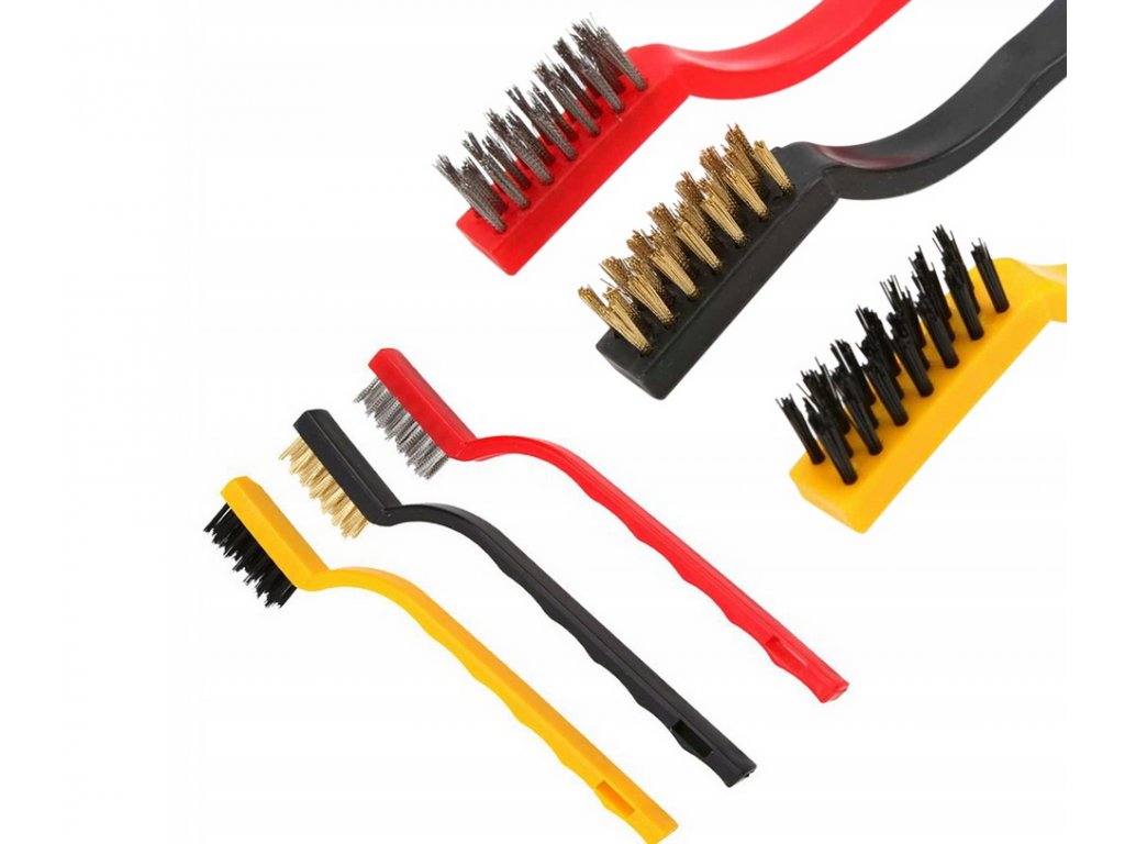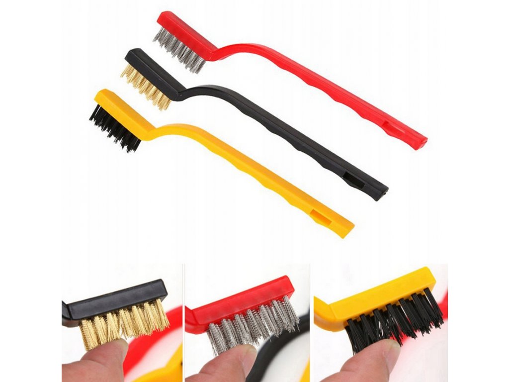 - Sada tří drátěných kartáčů o délce 16 cm, určených k odstraňování nečistot z různých materiálů