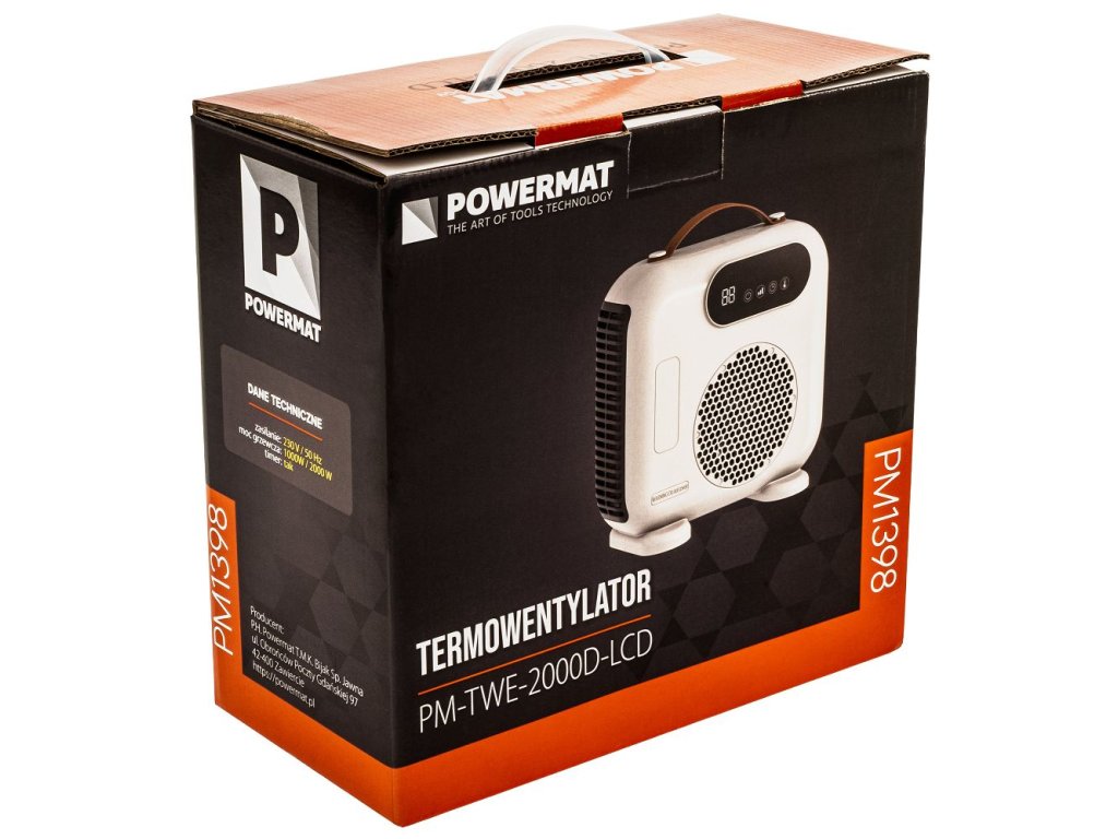 - ✔ Elektrický teplovzdušný ventilátor POWERMAT PM-TWE-2000D-LCD