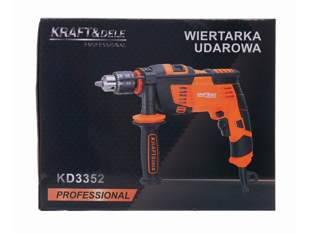 - TECHNICZNE PRODUKTU Marka: KRAFT&DELE Model: KD3352 Napięcie: 220V~240V / 50/60Hz jednofazowy Wydajność wiercenia: Drewno 25mm, ocel 12mm, Beton 14mm Udar częstotliwość: 48000bpm Długość kabla: 2m SKŁAD ZESTAWU:
