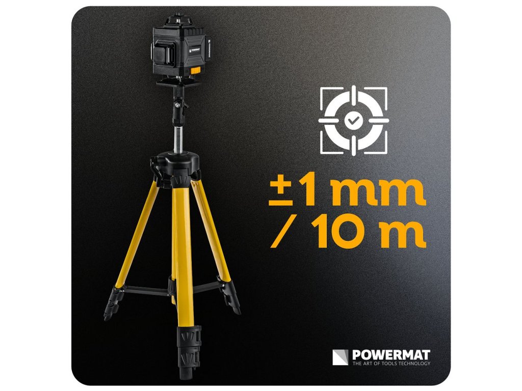 Laserový nivelátor POWERMAT PM-PLK-4DM1 je výkonné měřicí zařízení, které generuje 16 laserových linií v horizontálním i vertikálním směru s pokrytím kompletního úhlu 360°. Takto vytvořené vodorovné a svislé linie poskytují stabilní referenční body pro pokládání obkladů a dlažeb, montáž sádrokartonových konstrukcí, instalaci podhledů, dveří nebo oken i vytyčování konstrukčních prvků a elektroinstalací.