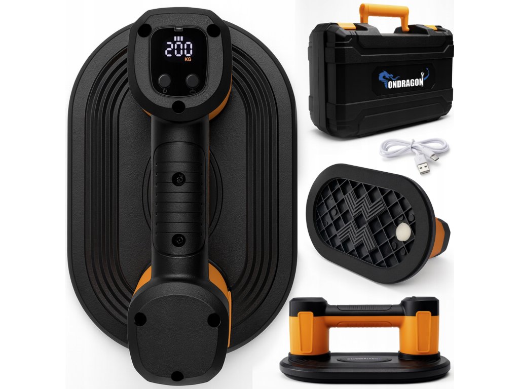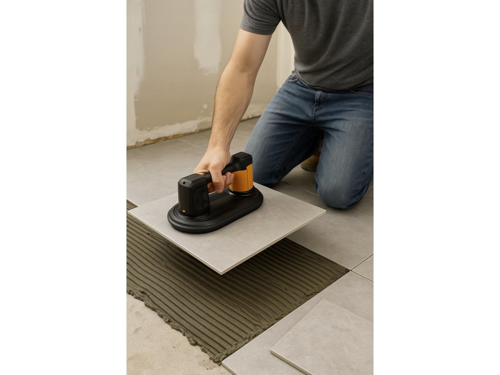 - ✅ Aku vakuová přísavka 200 kg – ideální pro manipulaci s dlažbou, sklem, gres deskami i obklady